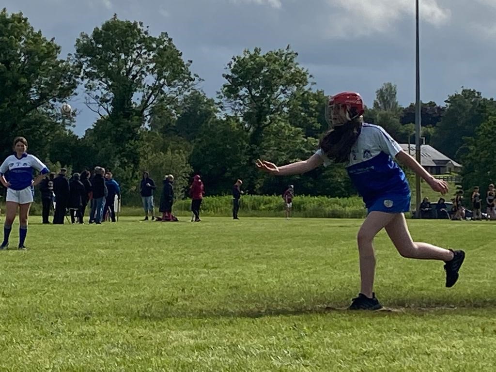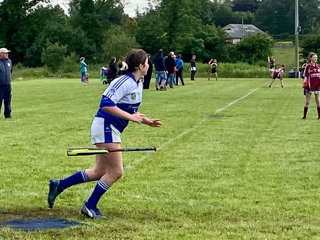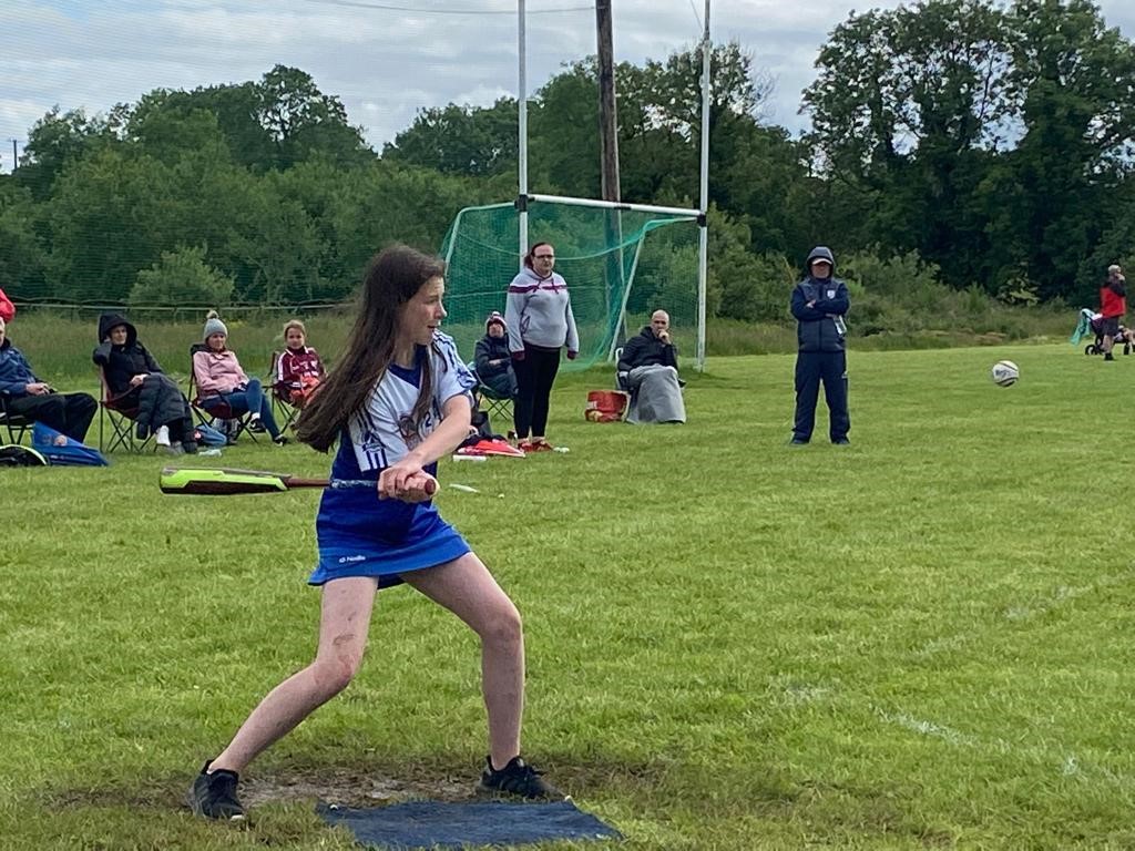 On Saturday 11th June our Under 13 Boys and Girls travelled to Clonguish GAA club in Longford to partake in the clubs first GAA Rounders Feile tournament. The teams were mainly comprised of hurlers and camogs, but also included a number of friends and neighbours who hadn’t embraced the caman. We had entered our first competition last year and the girls had reached the All-Ireland final, only to be narrowly beaten by an experienced Clonbroney side. However, with the pandemic related restrictions lifted there were more teams in this year’s competition which was littered with far more experienced GAA Rounders clubs. The fact that we had done so well last year also removed the element of surprise, as our hurling skills had been uncovered by opposition teams! We were also travelling with some debutants who were a little younger. However, there were some advantages to bringing younger players, as the height differential gave us some tactical options (as we had learned in last years under 12 final) that alternating tall and not so tall players in the batting order gave the opposition bowlers more of a challenge. When the smaller players were plucky characters like Vivienne O’Sullivan and Rose Hickey who can belt a ball then all the better!