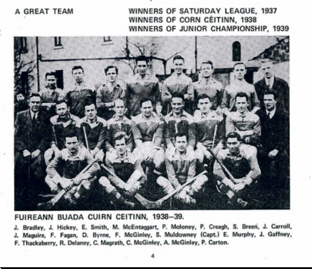 Our Junior A hurlers have progressed to the final of the Junior Championship for the 5th time in the clubs history. The 1st was in 1910 and covered in an earlier article entitled Gymnastics OnThe Hill. Next up was a “Great Team” as the legendary Dermot Byrne described them in the 75th Anniversary Club Booklet.